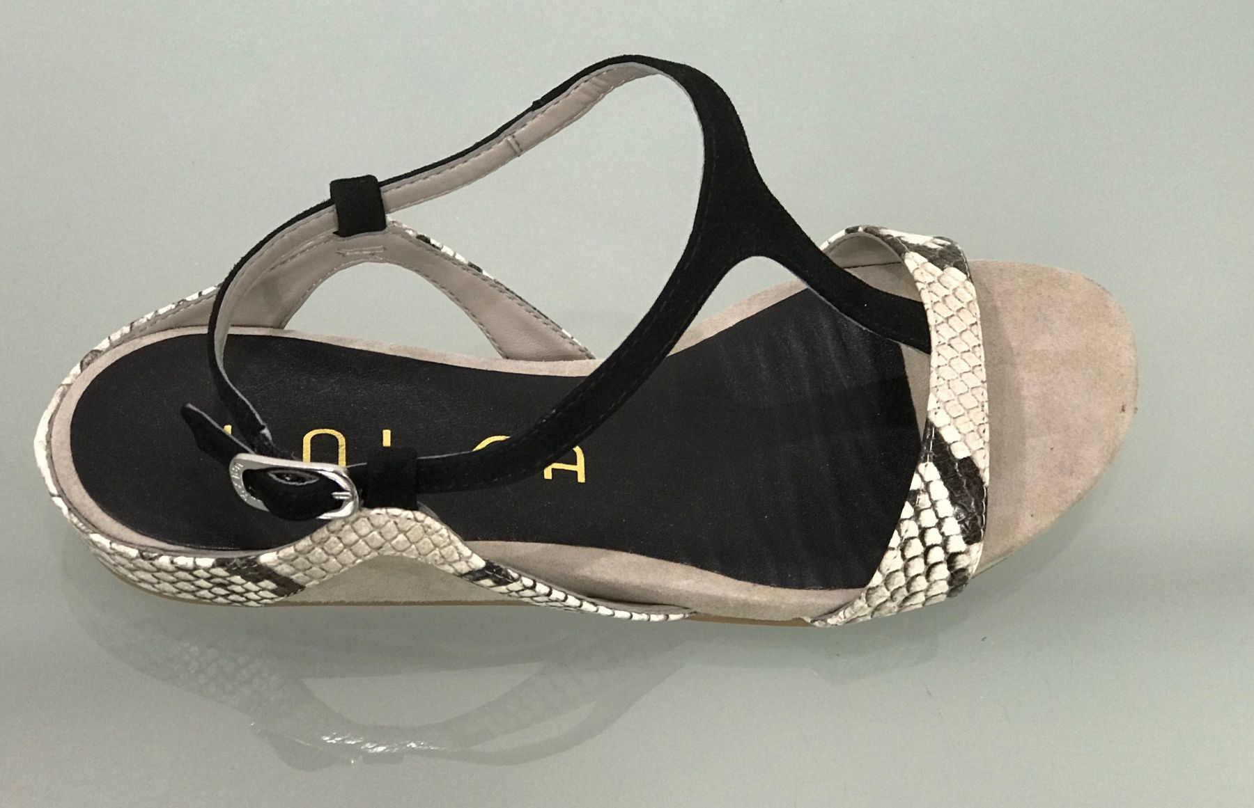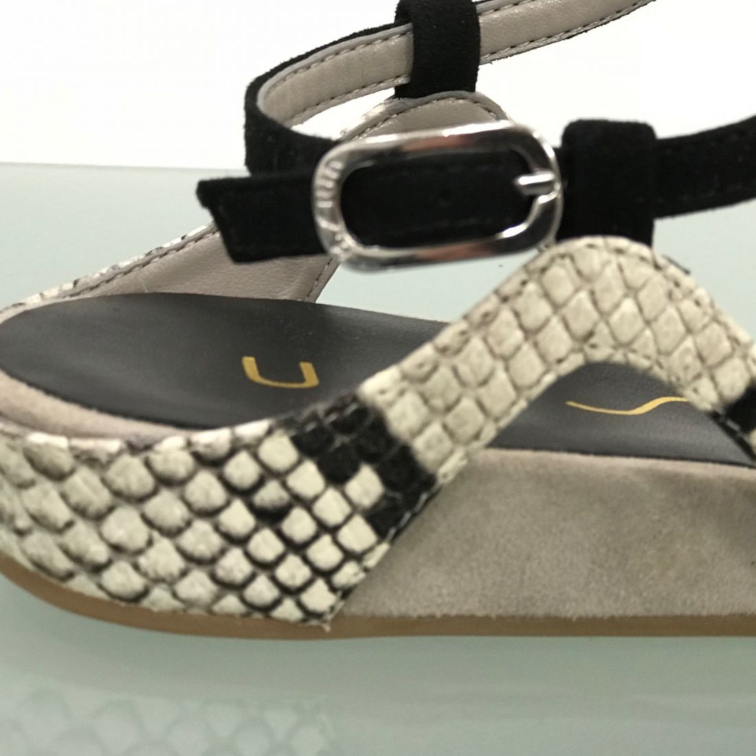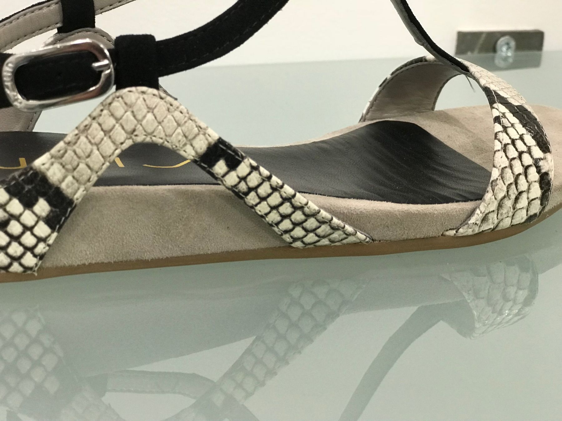 UNISALa paire de sandale plate en daim et cuir gravé serpent, couleur taupe de la marque Unisa est un indispensable de cet été. L'imprimé viper apportera une touche chic et plus moderne à vos tenues. Grâce à sa bride réglable votre pied et mieux maintenu.