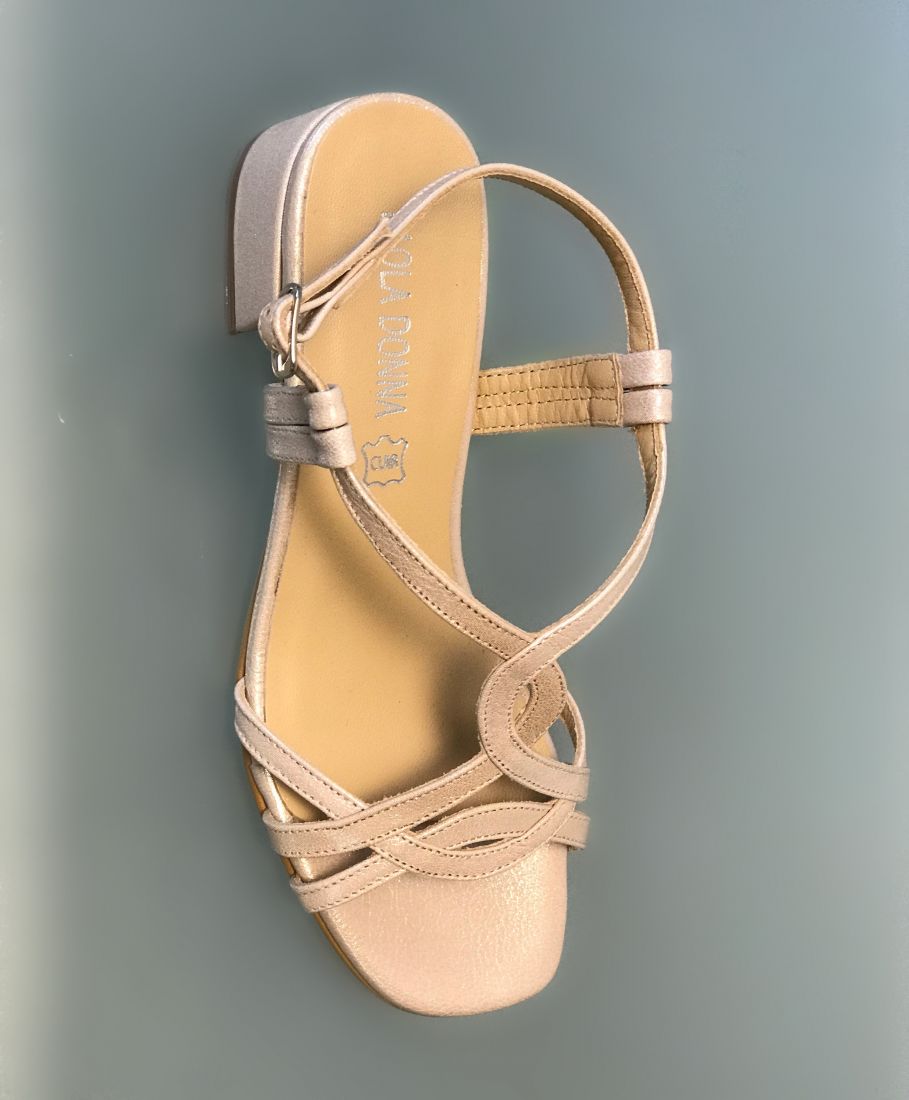 Ce talon carré avec sa surface plus large apporte plus de stabilité donc par conséquent vous obtenez un meilleur confort. Ce modèle de sandale à talon couleur rose poudré avec un effet légèrement pailletté vous permet d'être à l'aise tout en restant élégante.